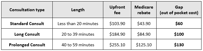 This is best illustrated by the fact that the same Medicare rebate ($65.75) applies for a consultation that takes 6 minutes as it does for a consultation that takes 19 minutes, even though the latter is more than three times as long.